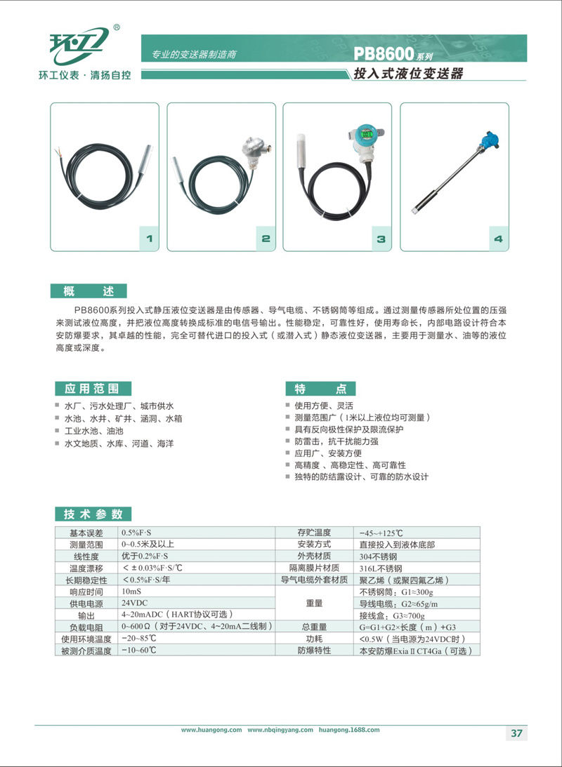 PB8600系列投入式壓力變送器